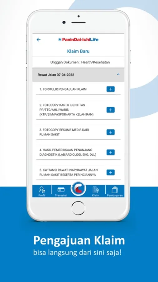 • Ajukan klaim langsung dari ponsel anda dan pantau status pengajuannya.