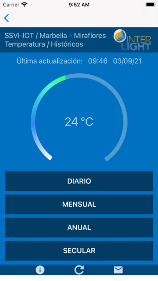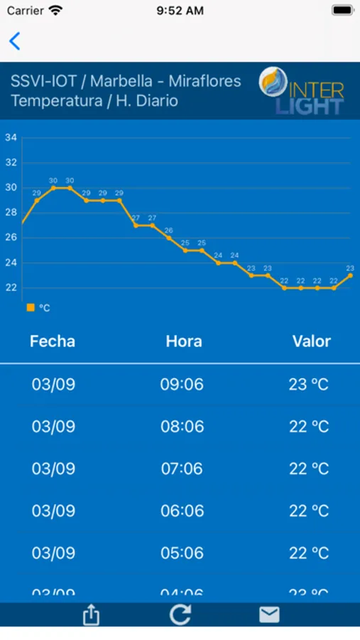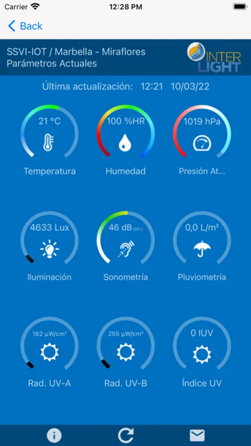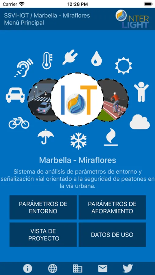 Aplicación móvil destinada al análisis de parámetros de entorno y señalización vial orientado a la seguridad de peatones en la vía urbana desarrollada por la empresa INTERLIGHT SP S.L. La aplicación muestra los datos recogidos por los sensores ubicados en las señales de los pasos de peatones, con el fin de mostrar