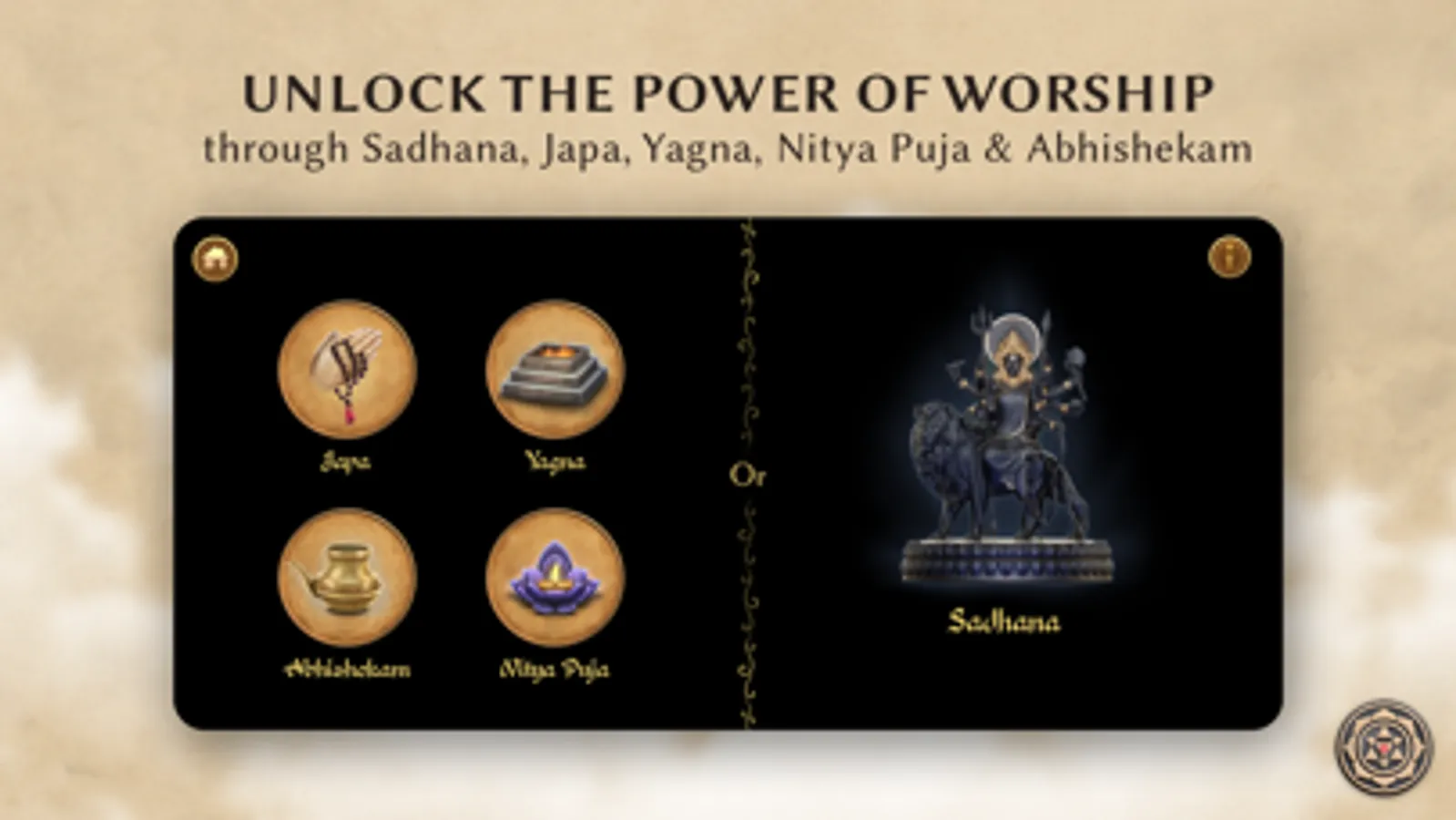 Set in the mystical land of Siddhashrma, hidden deep in the Himalayas, the Sadhana App recreates the sacred place where some of the greatest sages, transcendental rishis invoked such deities as Lord Shiva, Lord Vishnu, and Mother Goddess with the most sublime Vedic rituals.