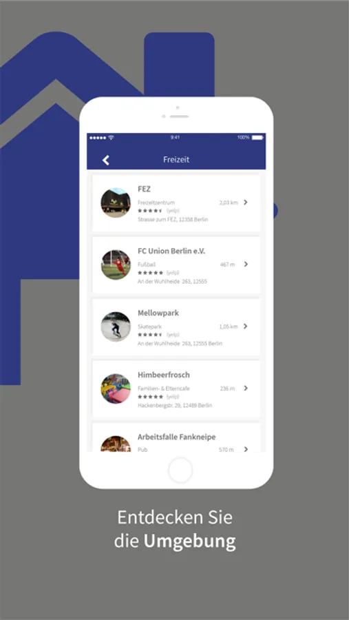 Informieren Sie sich z.B. über Geschäfte, Ärzte, Erstatten und über die Öffnungszeiten in Ihrer unmittelbarer Umgebung.