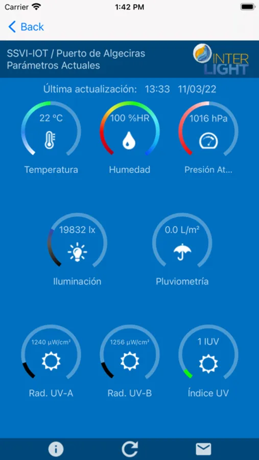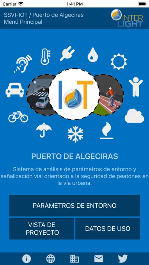 Aplicación móvil destinada al análisis de parámetros de entorno y señalización vial orientado a la seguridad de peatones en la vía urbana desarrollado por la empresa INTERLIGHT SP S.L. La aplicación se encarga de mostrar los datos recogidos a través de los sensores ubicados en las señales de los pasos de peatones, con el único fin de mostrar dicha información.