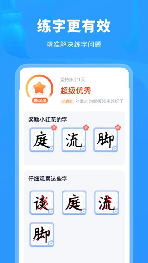 5、实时反馈:让孩子在练字时实时、便捷地获取练字反馈,指出不足之处,精准解决练字过程中出现的问题。