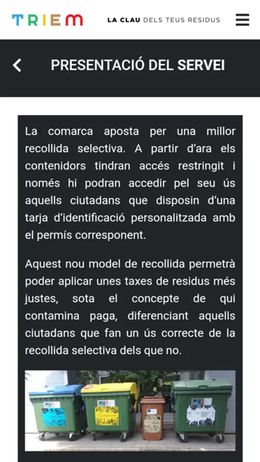 The App allows the user to track and monitor the delivery of waste for roadside containers and collection centers.