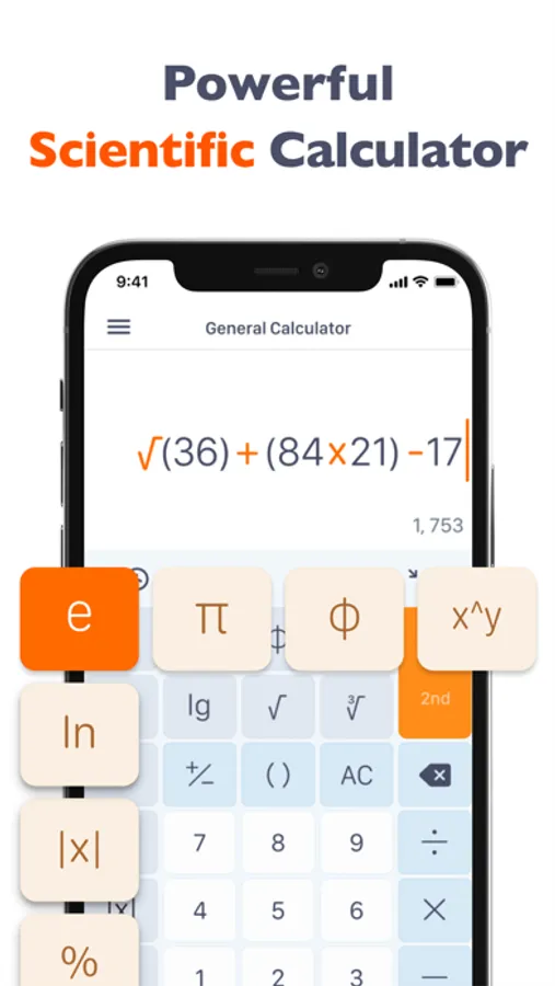 • Supports scientific operations such as trigonometric, exponential and logarithmic functions.