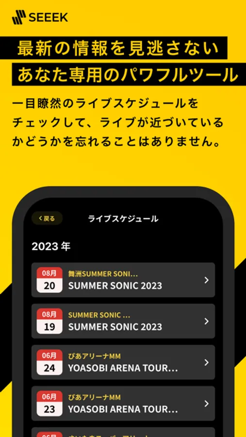 アーティストのライブスケジュールが一覧表示されるので、見やすくてアクションもしやすいです。
