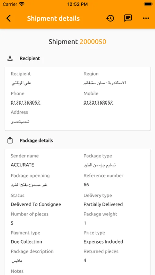 يسمح التطبيق لجميع العملاء في جميع أنحاء الجمهورية بإدارة تسليم واستلام الشحنات باستخدام الهاتف المحمول