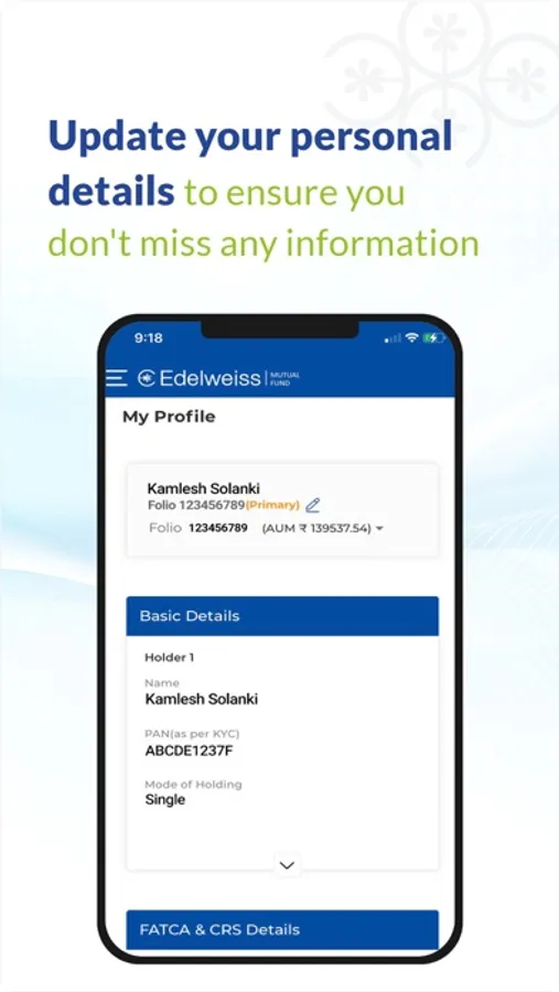 You can Initiate lumpsum transactions, start an SIP online in just few minutes, track your portfolio, update your personal details like mobile number, email Id, update nominee and bank details in few seconds.