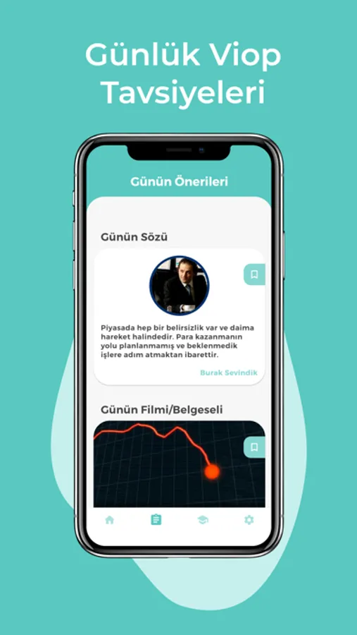 VİOP 101 uygulamasının en güzel yanlarından birisi de “Günün Önerileri” bölümüdür. Bu bölümde ünlü borsacıların özlü sözleri sizi karşılayacak. Sözlerden sonra film, belgesel ve kitap önerileri bulacaksınız.