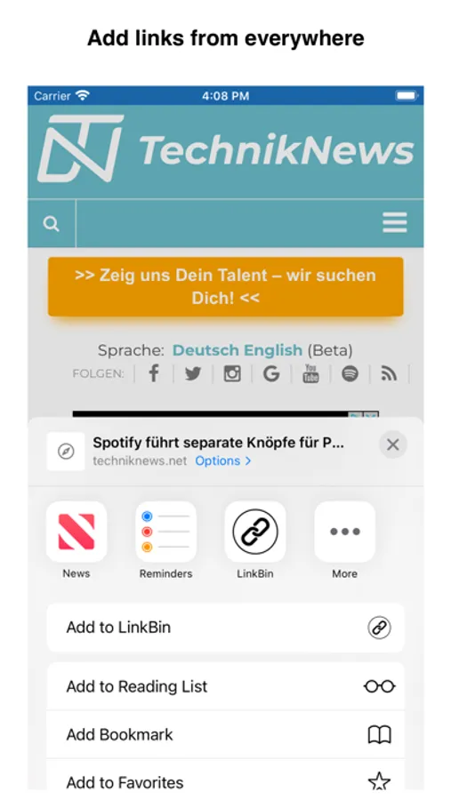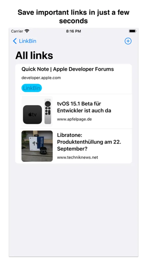 Ever wanted to save links for later, but other apps that do a similar things are too clunky? Enter LinkBin. Save links in a few seconds and get back to them at any time - just that, nothing more.