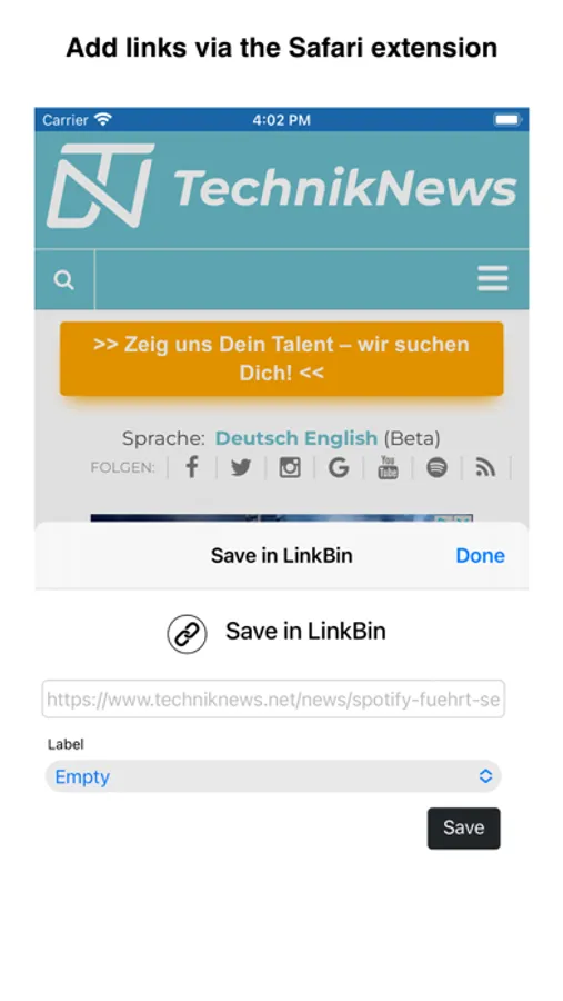 - Save links by pasting them into the app, by using the share sheet, or via the brand-new Safari extension on iOS and macOS