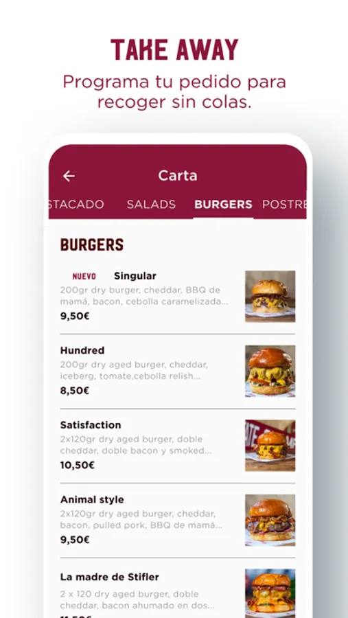 Simplifica la experiencia HUNDRED vía APP, pide y paga desde tu mesa con tu móvil. Programa pedidos para recoger o a domicilio y evita colas y demoras. Reserva tu mesa en tu tienda preferida o simplemente echa un vistazo a nuestra carta!