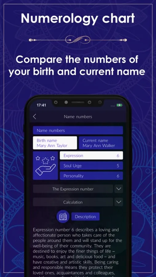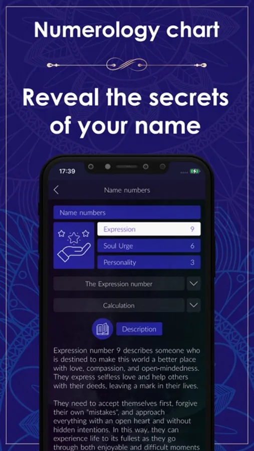 Numerology app generates a Pythagorean numerology chart. This app can also be used as a numerology calculator.