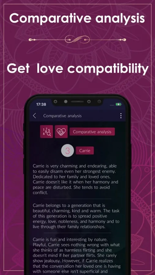 Comparative analysis of partners, or synastry, tells about the compatibility of partners. The synastry chart is based on the dates of birth. This comparative analysis doesn't have to be for an emotional partner, it can also be applied to work and friendships, as well as any other kind of relationship.