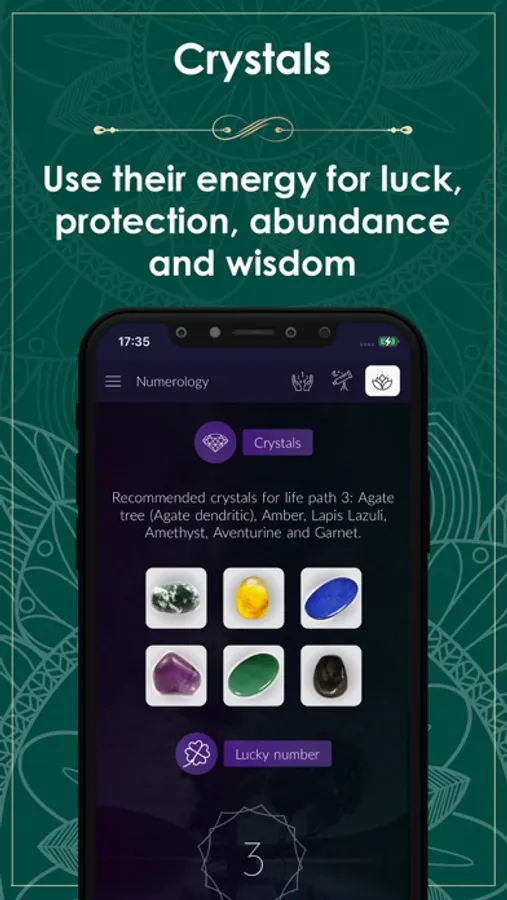 Crystals, gems or semi-precious stones have been used since the ancient times because of their beneficial energy. Numerology app contains recommendations of crystals for each life path / personal number, as well as a recommendation for a personal year. Crystals help us raise our energy and vibration, provide happiness, abundance, protection and wisdom.
