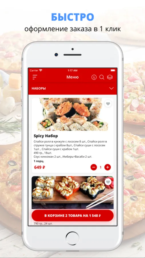 Скачивайте наше приложение, оформляйте заказ и наслаждайтесь любимой едой, где бы Вы ни были! Приятного аппетита!