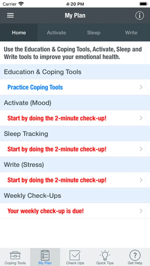 - Easy access to best-practice mobile tools that support emotional recovery and health across a range of domains, including stress, anxiety, depression, and sleep.