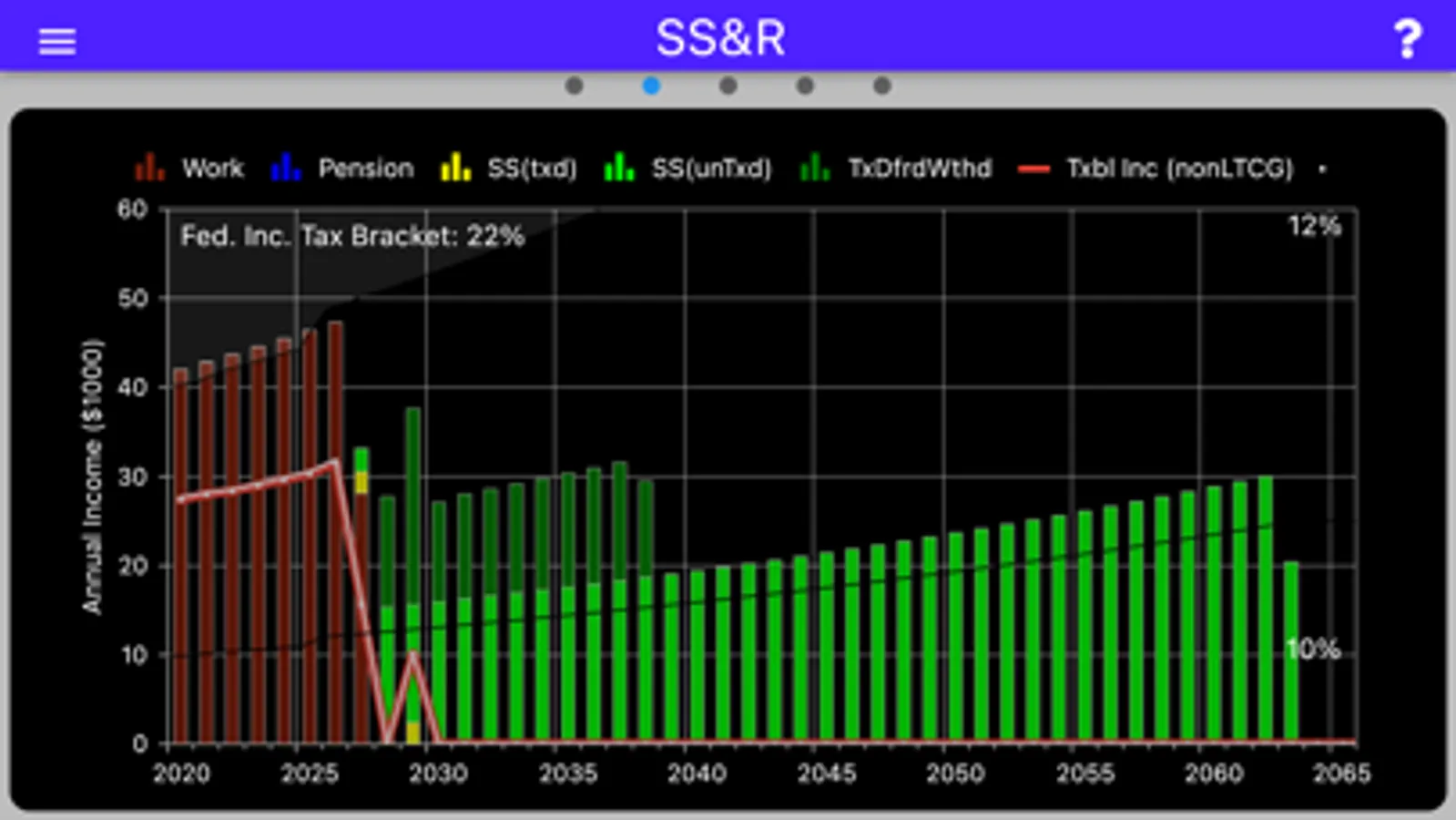 Given the difficulty of comprehending the interactions between income, savings, taxes, and Social Security benefits in even the short term, and given that retirement decisions can have a financial impact two, three, or four decades down the road, help is needed to peer into the foggy future. SS&R combines the particulars of a person's or couple's situation, handles the interactions, and projects the consequences of retirement decisions into and through the retirement years .