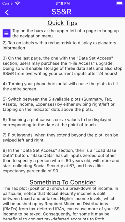 SS&R, utilizing 2022 Social Security and US federal tax parameters, 2020 Social Security actuarial data (for life expectancy), inputs/assumptions concerning future market performance and cost-of-living changes, along with inputs that describe a person's or couple's current financial situation, strives to project that situation out into the future. The world, however, is not orderly. Paraphrasing a bumper sticker, 'Stuff happens.' Rules change, situations change, and it's even possible, truth-be-told, that coding errors exist that impact the outputs of SS&R. Thus, SS&R is, and should be viewed as, a well-intentioned assistant, not a source of "Gospel truth."