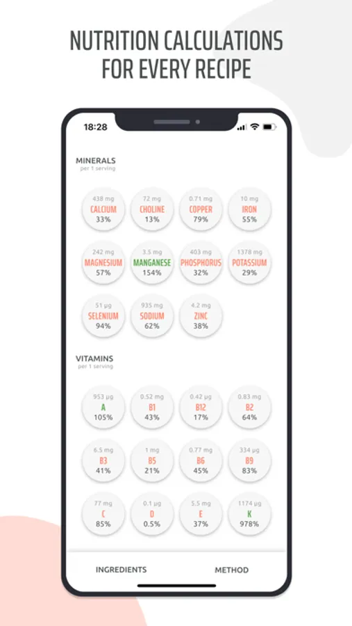 - Access nutrition values of every new recipe you add. We break it down for you to 32 most important nutrients.