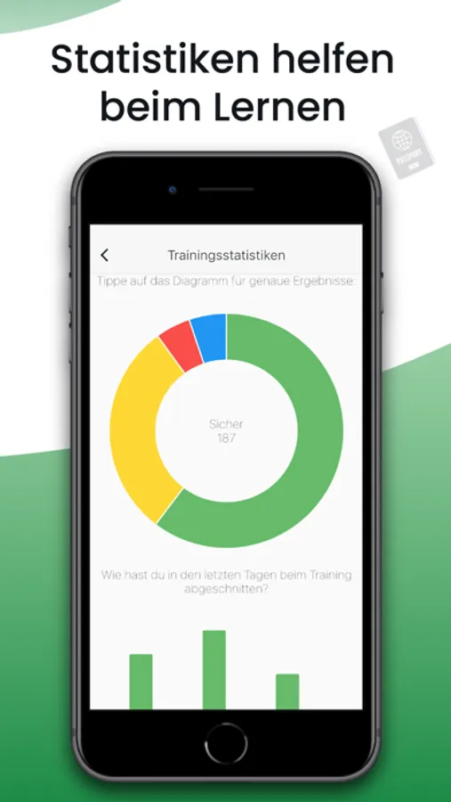 Bei Rot solltest Du die Frage noch ein paar Mal durchgehen und bei Grün bist Du bereit für die Prüfung.