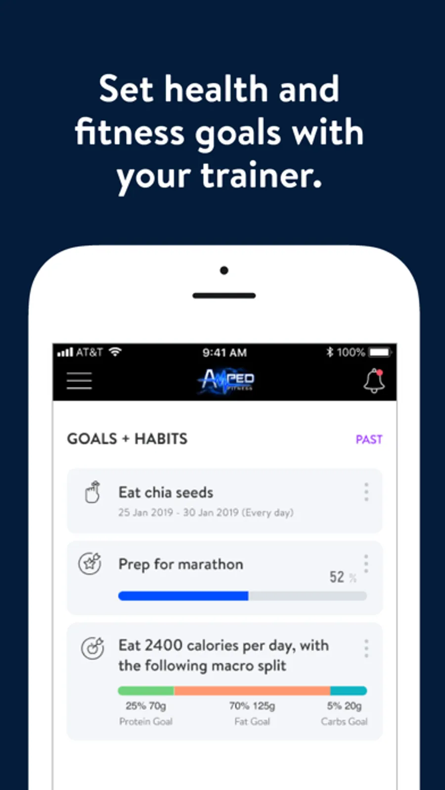 With the Amped Fitness Plus App, you can start tracking your workouts, meals, and milestones! Measure your results and achieve your fitness goals all in one place with the help of your Certified Personal Trainer and the Amped Fitness Plus App!