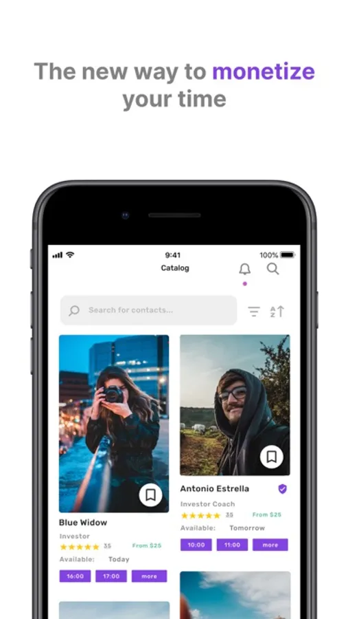 bookme is the new way to monetize your time. You can interact with several circles: close ones, qualified ones, available ones, or on-demand in a simple, interactive, and practical way.
