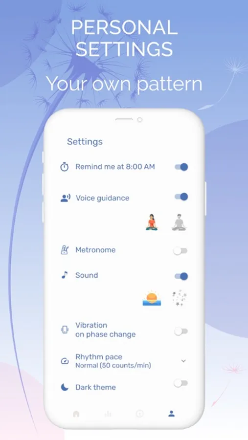 Our breathing depends on our own state of mind and changes along with it. It can therefore vary between being energetic and elevated when we're excited, frequent and shallow when we're stressed, or free, even, and smooth when we're calm and relaxed.