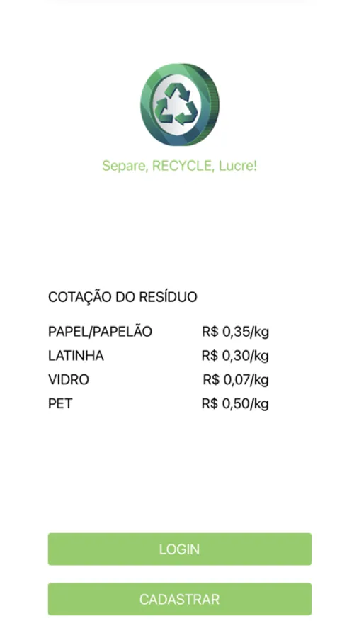 É isso mesmo, aqui você separa seu lixo reciclável, clica no botão e recebe R$ na conta!