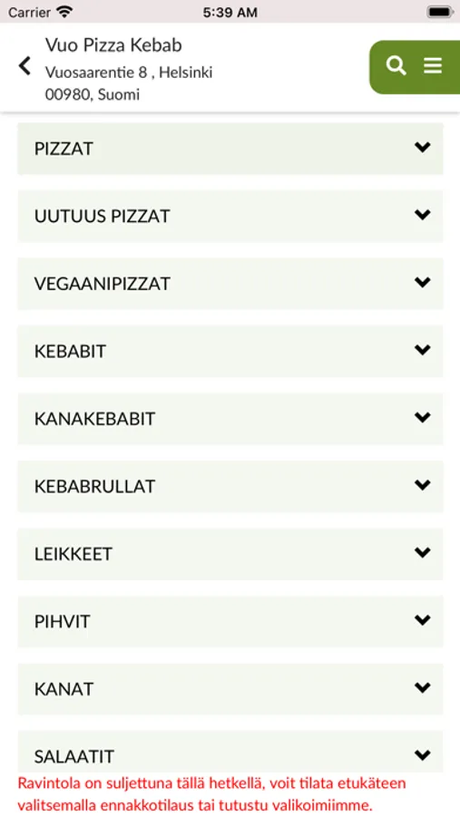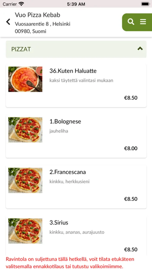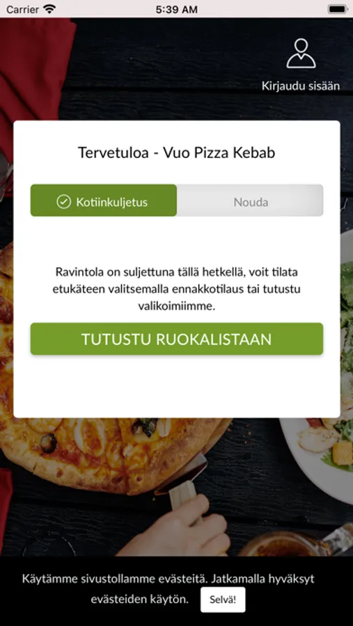 Vuo Pizza-sovellus pähkinänkuoressa:*Nopea ja helppo tapa tilata ruokaa kotiin puhelimella*Ruoan saamisen tulisi olla mahdollisimman helppoa. Siksi voit voit maksaa suoraan sovelluksessa monella eri maksutavalla.Mikä vain sinulle parhaiten sopii.Jos sinulla on kysymyksiä liittyen palveluun voit lähettää meille sähköpostia osoitteeseen [info@vuopizzakebab.fi] info@vuopizzakebab.fi www.vuopizzakebab.fi