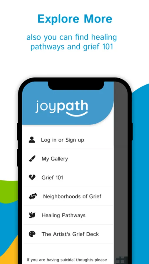 JoyPath will also offer you the opportunity to visit our Healing Pathways - These offer strategies for processing your experience and taking care of yourself in what can be turbulent times. The healing pathways explore how the user might incorporate the use of music, art, poetry, meditation and massage in the grief journey.