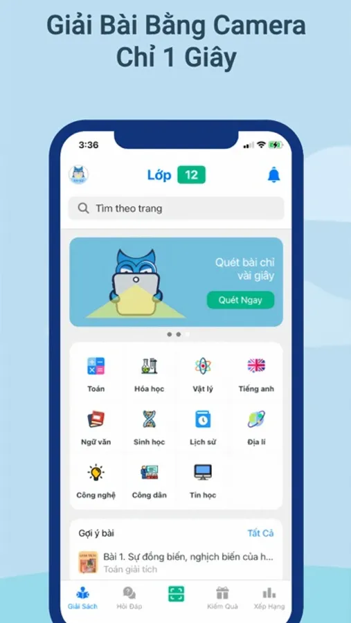 1. Giải bài tập nhanh bằng camera, bài tập về nhà, bài tập trong sách.