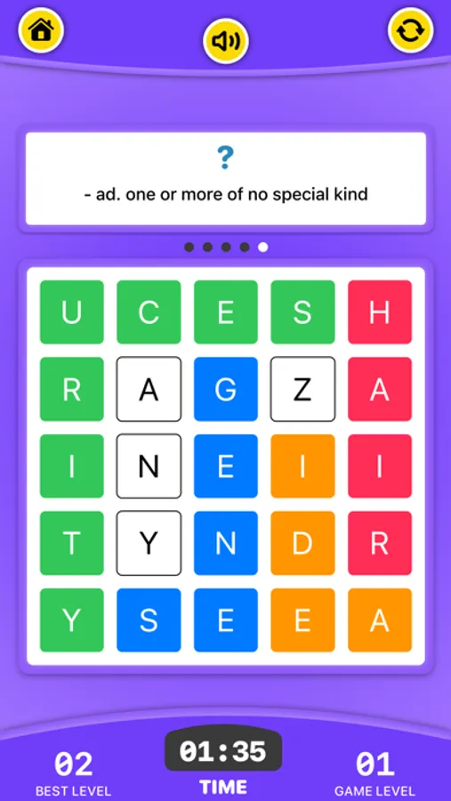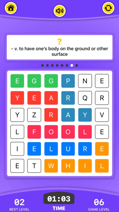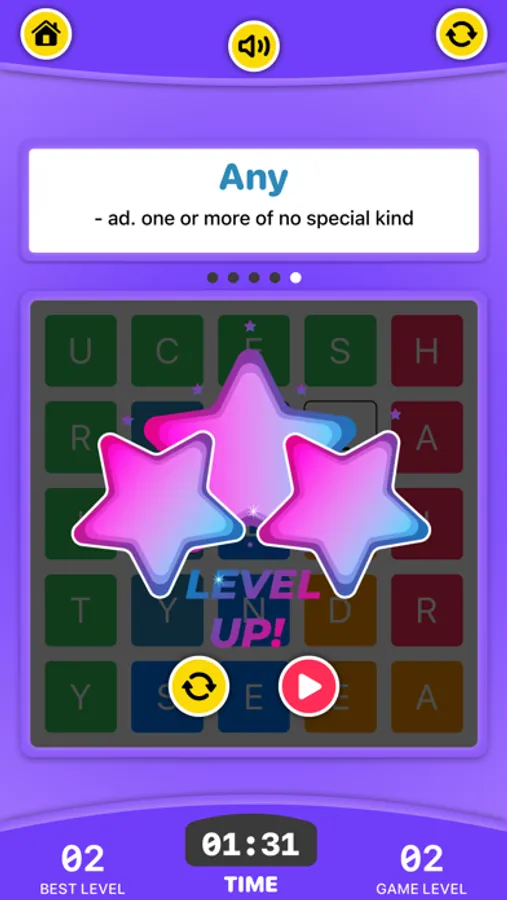 - Search and swipe letters to create words horizontally, vertically.