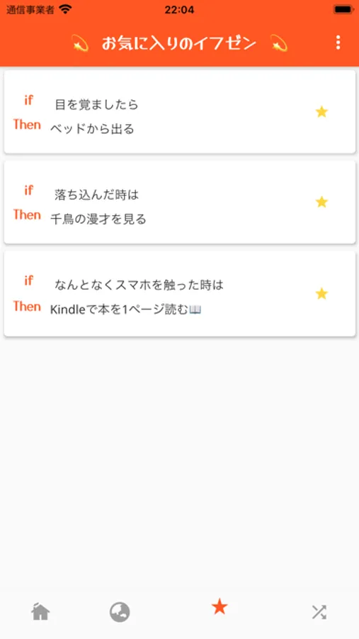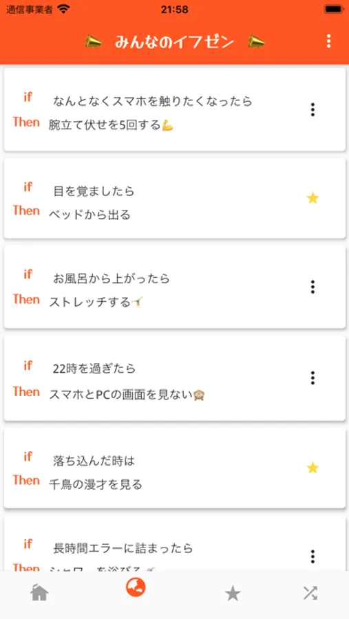 ・みんなのイフゼンの中からお気に入りにしたIf-Thenプランが一覧表示されます。