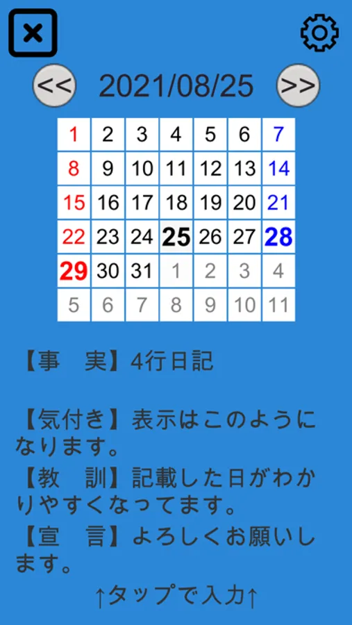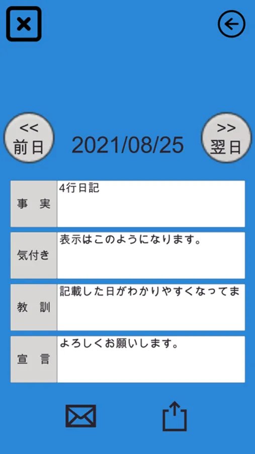 4行日記とは、今日起きた「事実」、「気づき」、「気づきから得た教訓」、「宣言」を