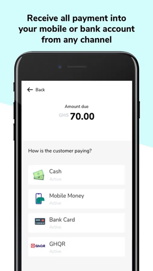 Use the Hubtel Sale app to receive money from customers conveniently via any payment channel Mobile Money, Card and GhQR ,while funds go directly into any account of your choice.
