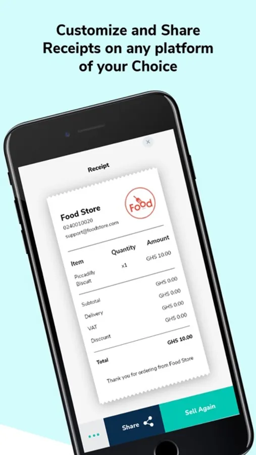 Use your Hubtel sale app to customize and share Business receipts professionally to customers via any channel and even print