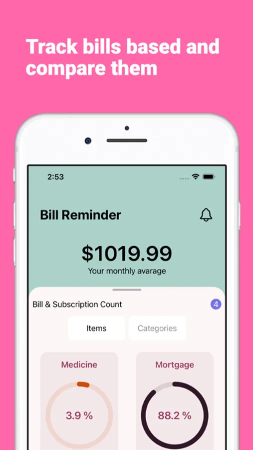 This is a simple, easy to use bill tracking app. Just create a bill by entering bill name and due date. You may choose to categorize your bills taking advantage of various built-in categories. You may delete undesired/obsolete bills from the list. You may plan push notifications as reminders. Most importantly, you have the possibility to compare your expenditures based on items or categories which might help you plan/organize your expenses.