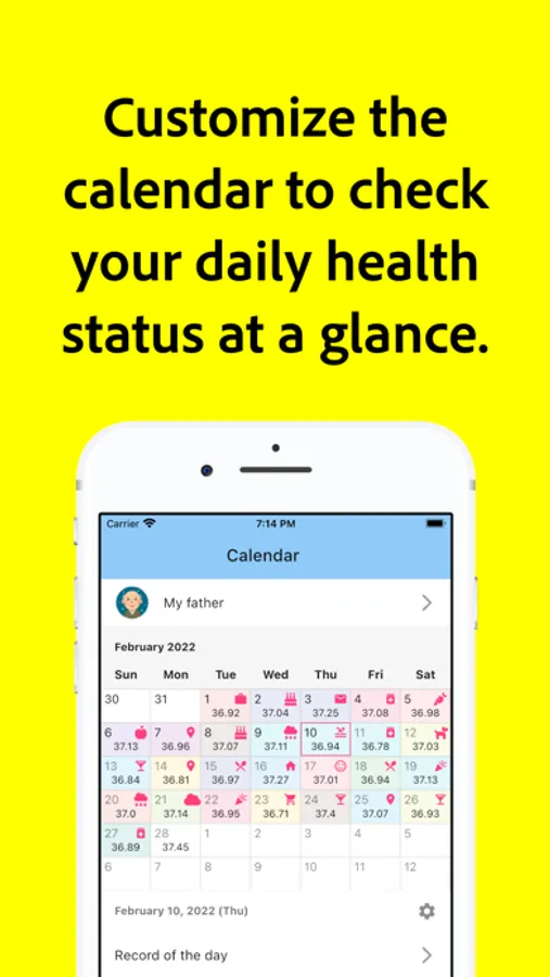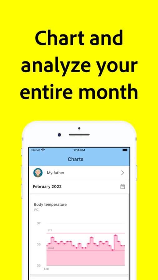 Target values for body temperature, blood oxygen saturation, blood pressure, and pulse rate can be set for each family member.