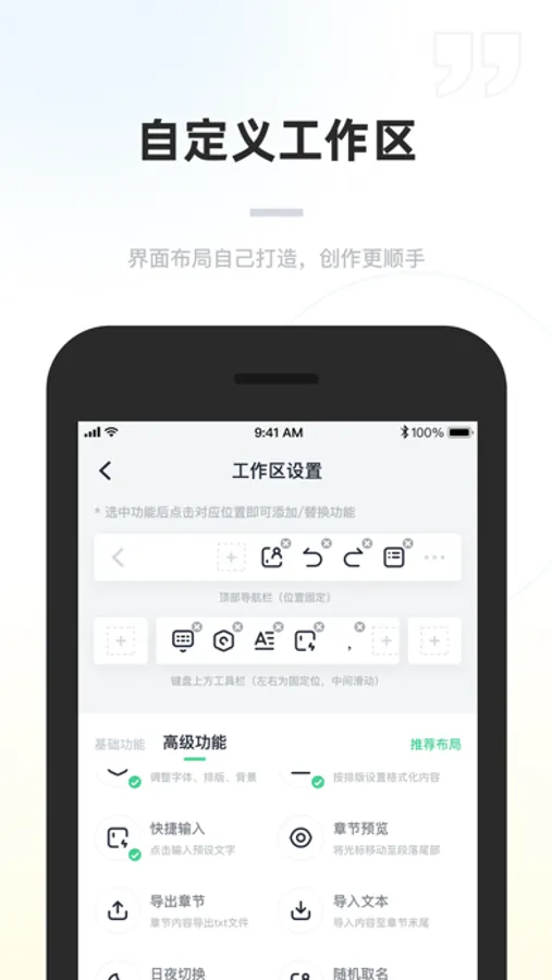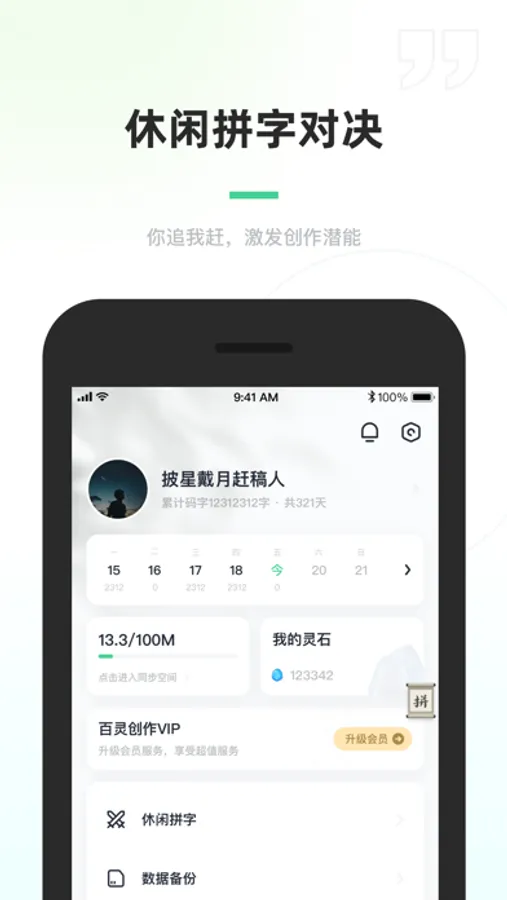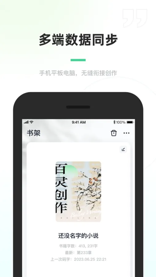 百灵创作是一款简约而不简单、功能强大且安全的高颜值码字工具,为网络写手、小说作者提供跨平台的写作环境,强大的数据备份和云同步技术,保障作者的数据安全,且提供多端无缝切换的流畅体验。