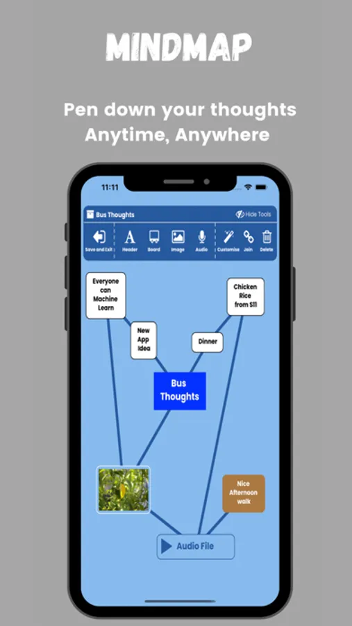 IDLE BOARDS is all the applications you need ideate on the go. To simply put it is a mind mapping tool that allows you to see the flow of your ideas. You can jot down your ideas immediately and come back to them when you want to further explore your idea.