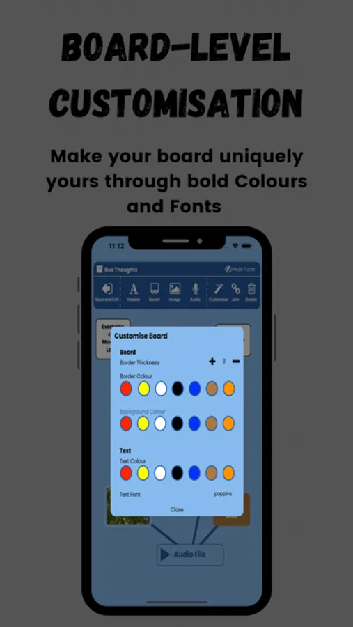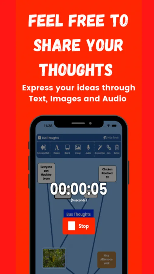 Idle Boards gives you many ways to express your thoughts and ideas. There are Text, Images and Audio.