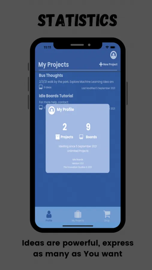 Give your project a name and a description if you want to. This way, you can categorise the Ideas you have.