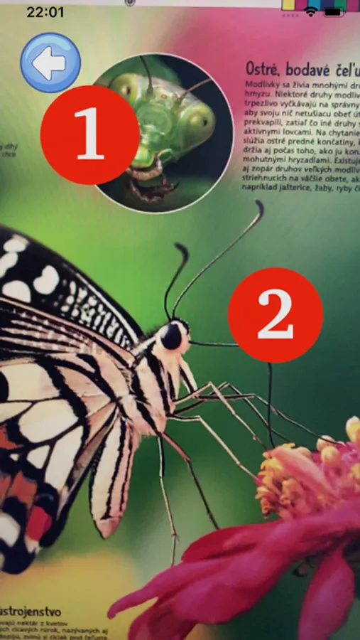 This free classical music app plays music when you point the camera at the pages of the book "Tap a Dot - Bugs" and tap on the numbered markers.