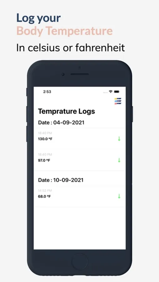 This app is useful for having the track record of your body temperature. You can easily log your body temperature and add values in Fahrenheit or celsius