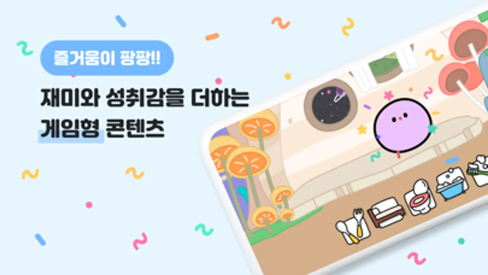 학습과 더불어 보상과 흥미 요소를 더한 게임형 콘텐츠로 재미와 성취감을 더해줍니다.