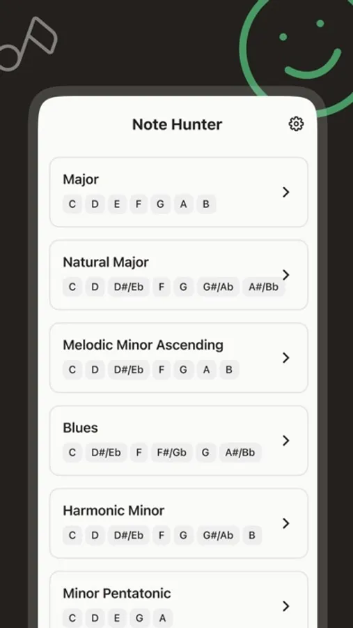 Improve your hearing and your musical knowledge with the Note Hunter, you just select a pitch and you will hear a randomly selected note from that range. You can add a reference note to help you to find it.