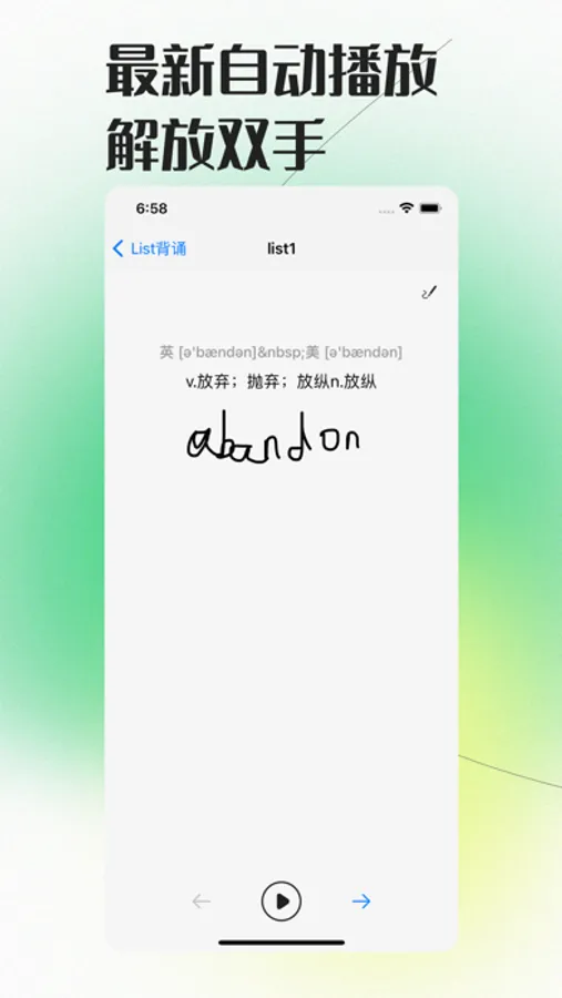 这款单词本可以帮助您,首页它可以快速的背诵单词,让你快速的第一遍背完整个单词本,而无任何压力。