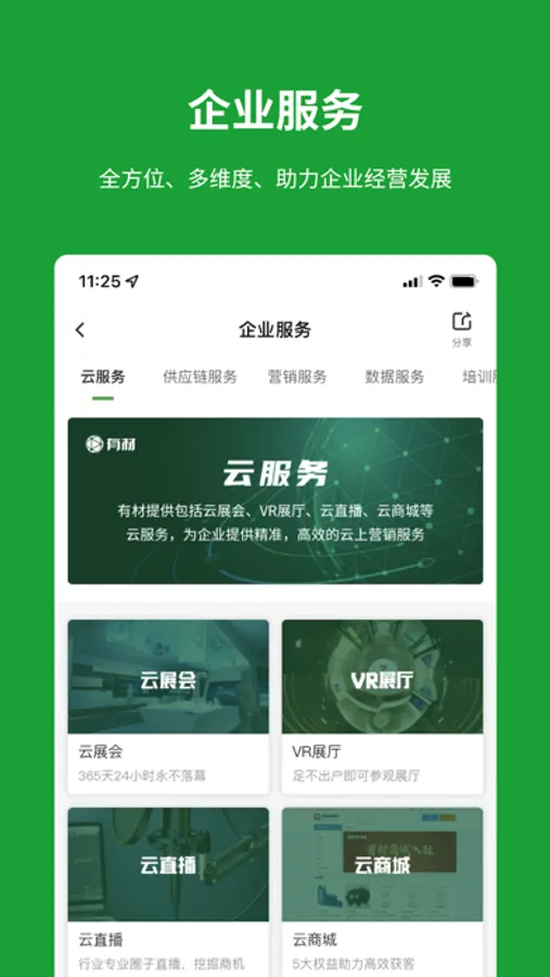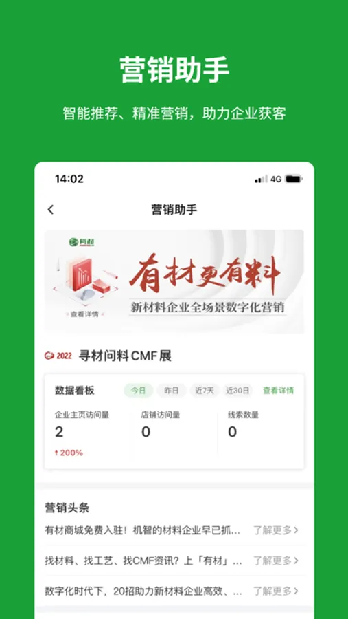 有材是新材料企业数字化服务系统,新材料全产业链大数据和智慧供应链服务平台;营销助手、大数据、云课堂、云展会、云工厂、云采购、云商城等功能模块,数字化赋能助力企业降本增效。