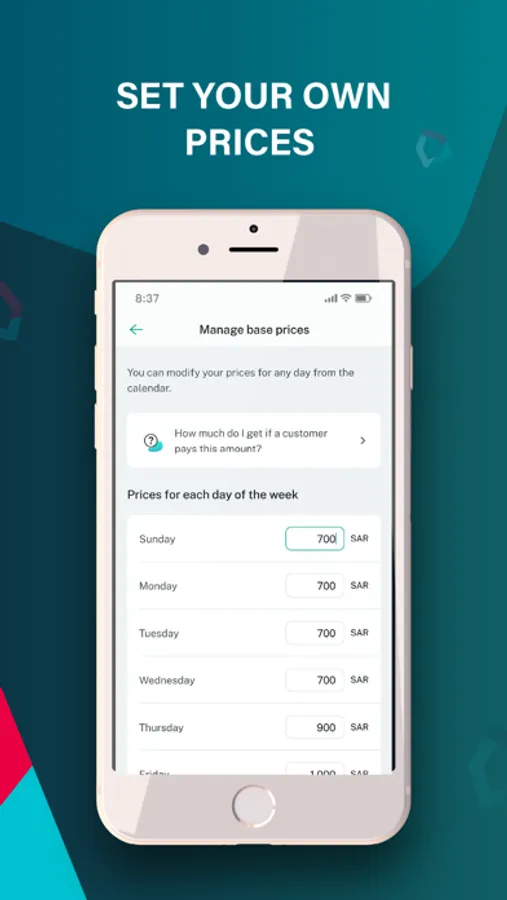- Set prices per day, seasonality and more