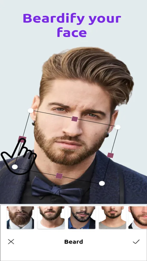 Give your hair and beard a fresh style: How do you look like if you grow a beard or mustache? What type of hairstyle suits you the best? Make your selection from a collection of pre-set mustaches, hair, and beards, and apply it to your face and head. Other than the opinion to change the style, you can also change the color of your hair.